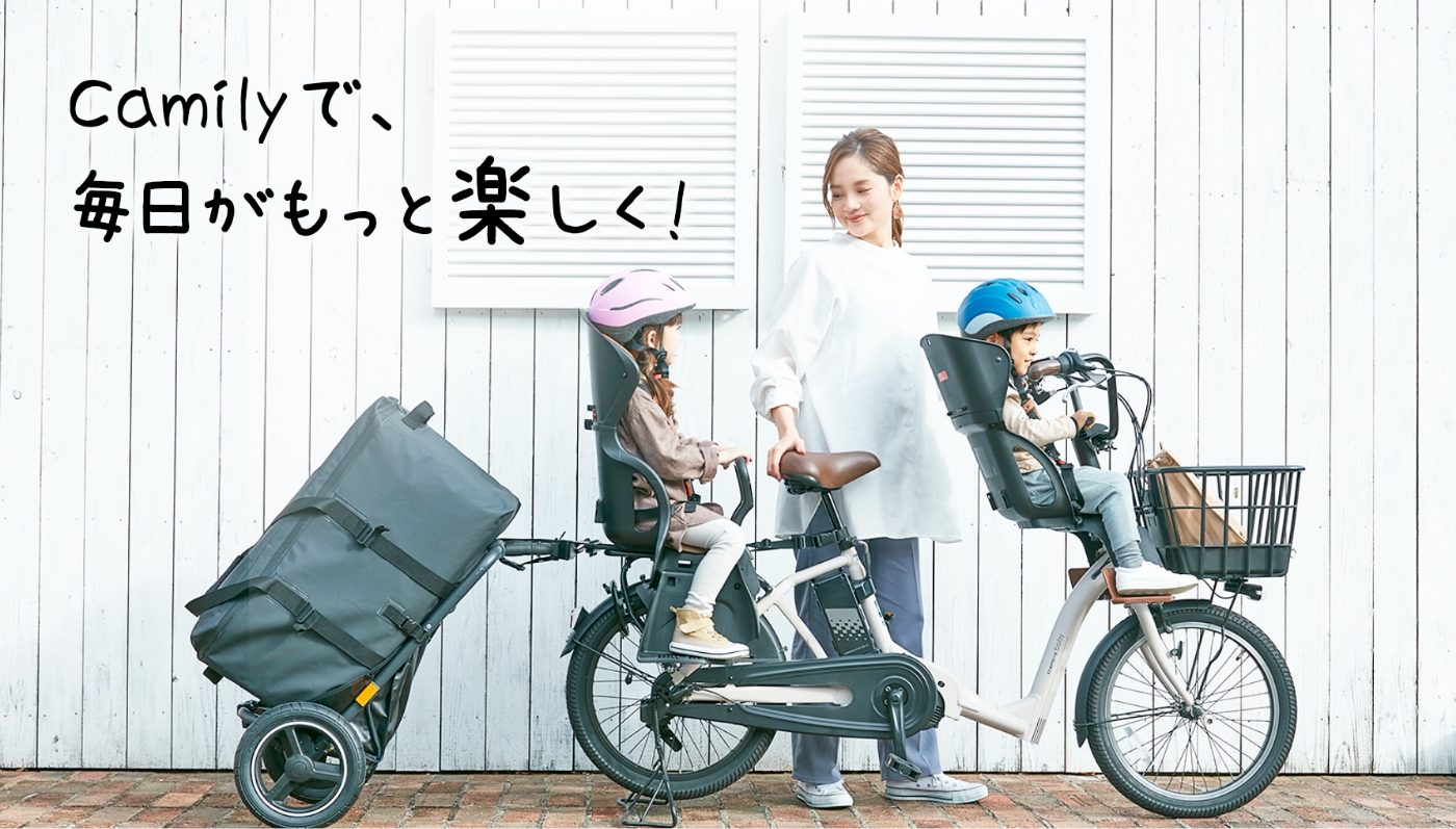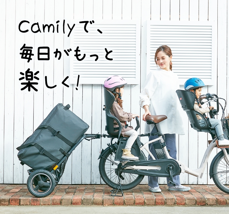 そんな想いで、チャイルドシート搭載自転車にも取り付け可能なサイクルトレーラーづくりに挑戦し、Camilyキャミリーが誕生しました。