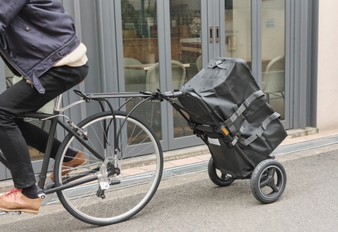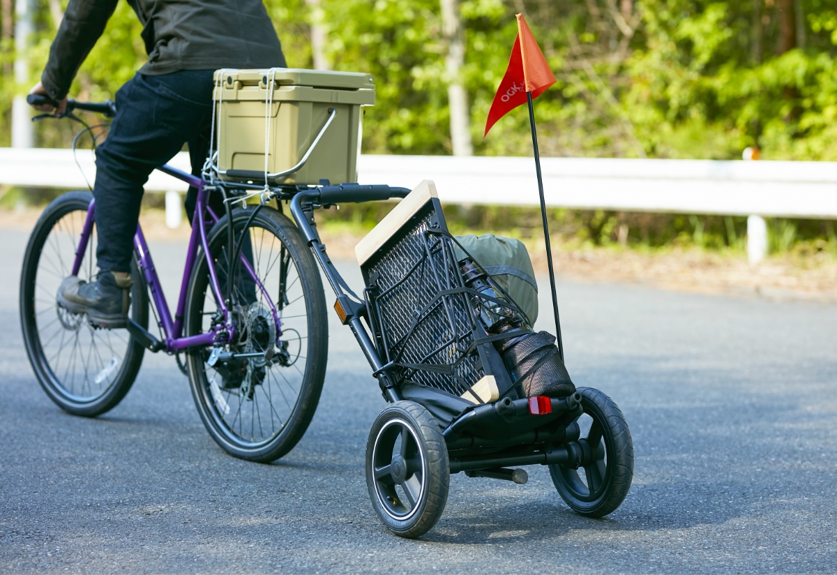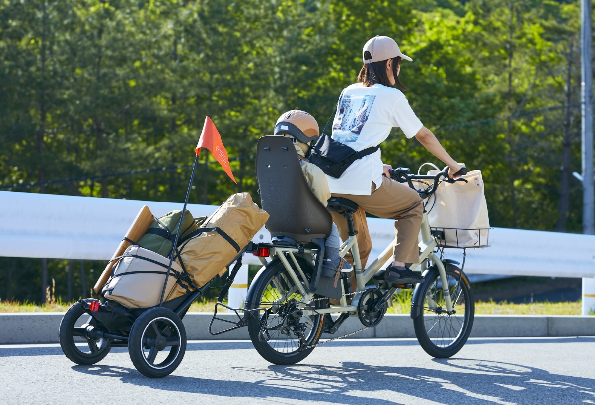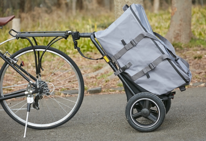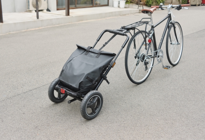 子ども乗せ自転車でもけん引できて、スムーズな走行を実現したサイクルトレーラー。
